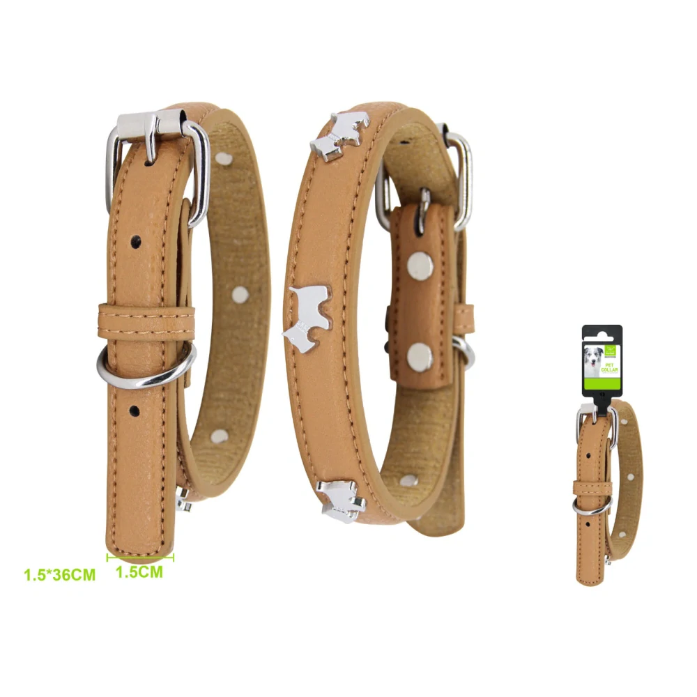 Ez az elegáns bőr nyakörv ideális választás mindennapi sétákhoz és különleges alkalmakhoz is. Kiváló minőségű anyagból készült, amely egyszerre kényelmes és tartós, a fém csatok pedig biztos tartást és hosszú élettartamot garantálnak.