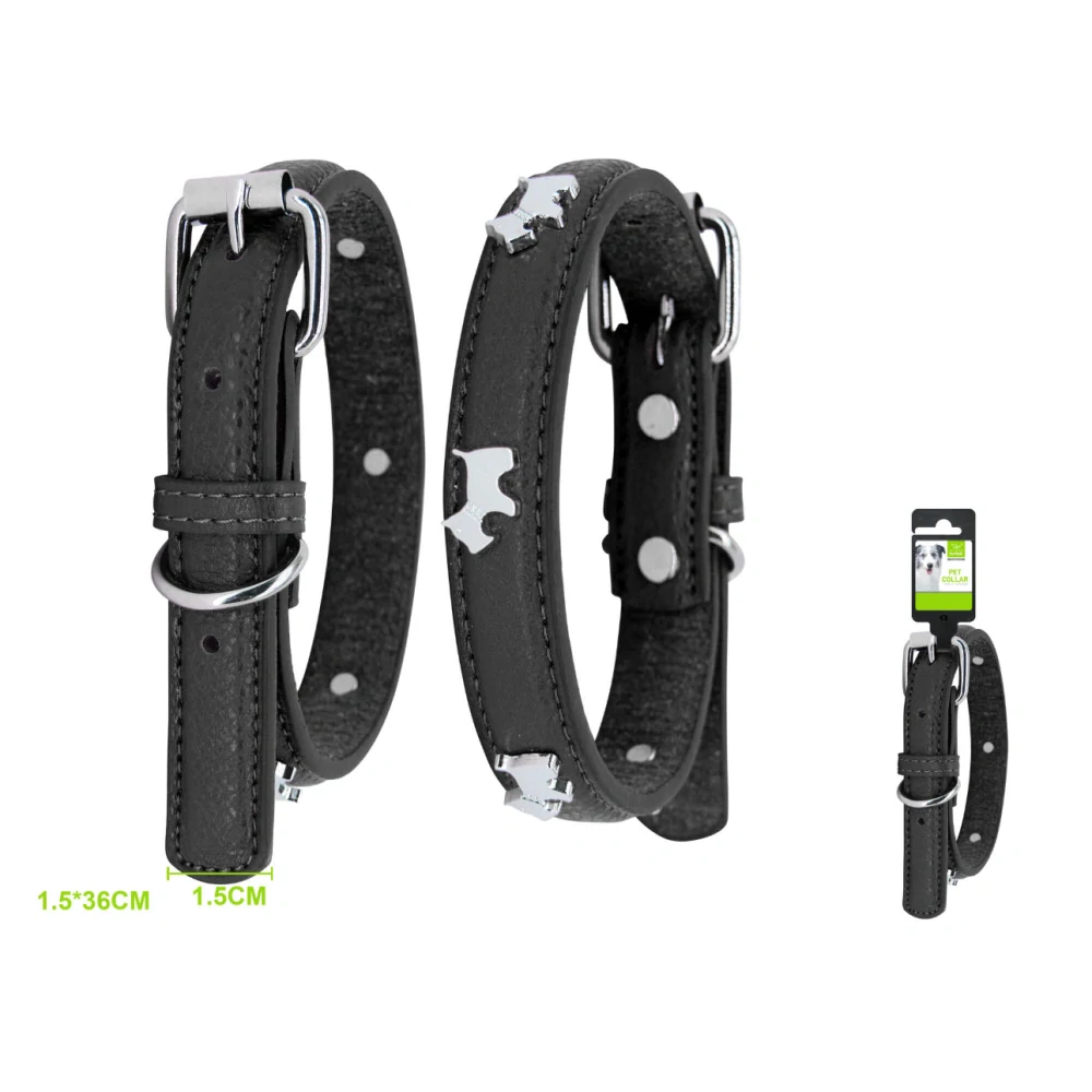 Ez az elegáns bőr nyakörv ideális választás mindennapi sétákhoz és különleges alkalmakhoz is. Kiváló minőségű anyagból készült, amely egyszerre kényelmes és tartós, a fém csatok pedig biztos tartást és hosszú élettartamot garantálnak.