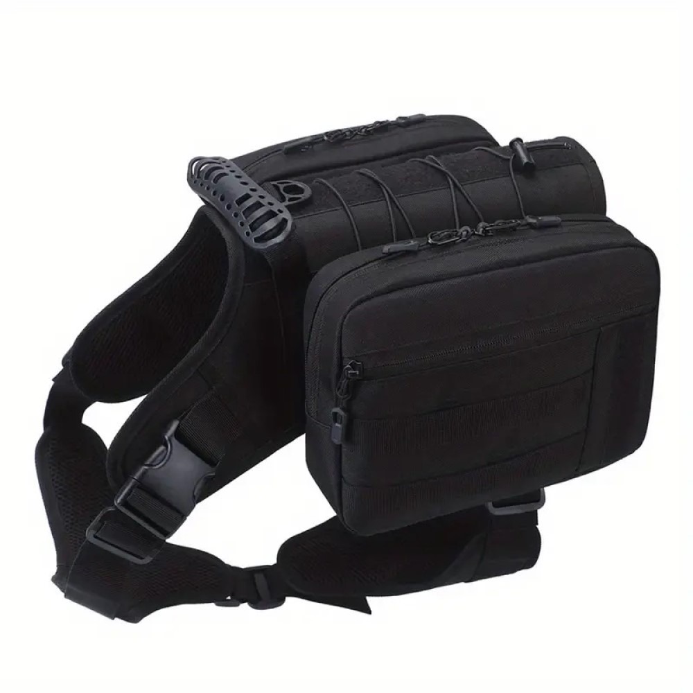 Állíthatós taktikai kutyahám oldaltáskákkal 2 az 1-ben – Fekete