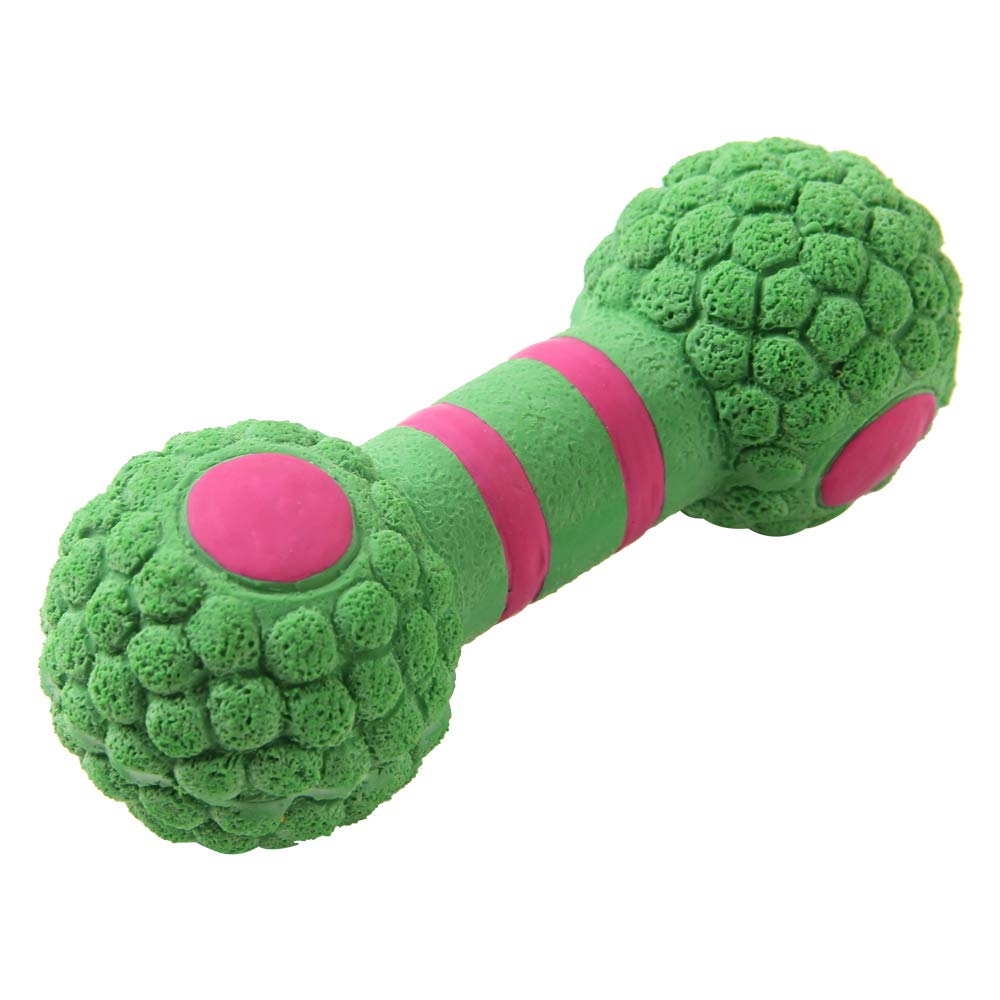 Szórakoztató és strapabíró latex kutyajáték súlyzó formában, amely tökéletes választás aktív és játékos kutyák számára. A beépített csipogóval még izgalmasabbá válik a játék, ösztönözve a kutyát a rágásra és a mozgásra.
