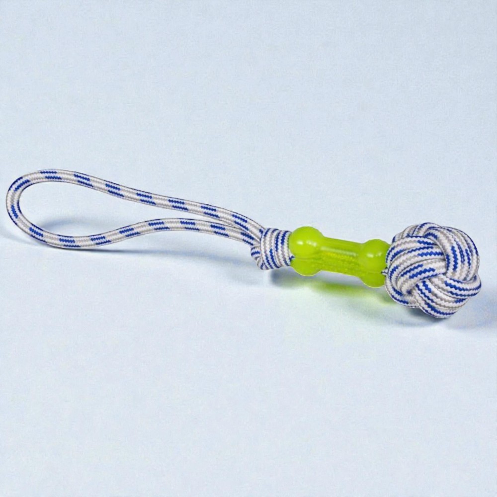 A strapabíró, erős kötélkialakítás jól bírja a húzást és az intenzív rágást, a csomózott vég pedig könnyű megfogást biztosít a kutya számára. A hurkos kialakításnak köszönhetően ideális apportírozáshoz és gazdival való húzójátékhoz is.