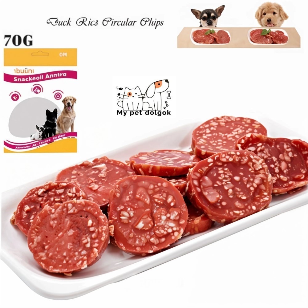nAz Ibuoni Kacsa és Rizses Tallér ízletes, prémium minőségű jutalomfalat kutyák és macskák számára. 100%-ban természetes kacsa húsból készül, mesterséges adalékok és tartósítószerek nélkül, így ideális választás az érzékeny gyomrú kisállatoknak is. A puha és könnyen rágcsálható szeletek egyszerűen emészthetők, és gazdagok fehérjében, támogatva az egészséges izomzatot.