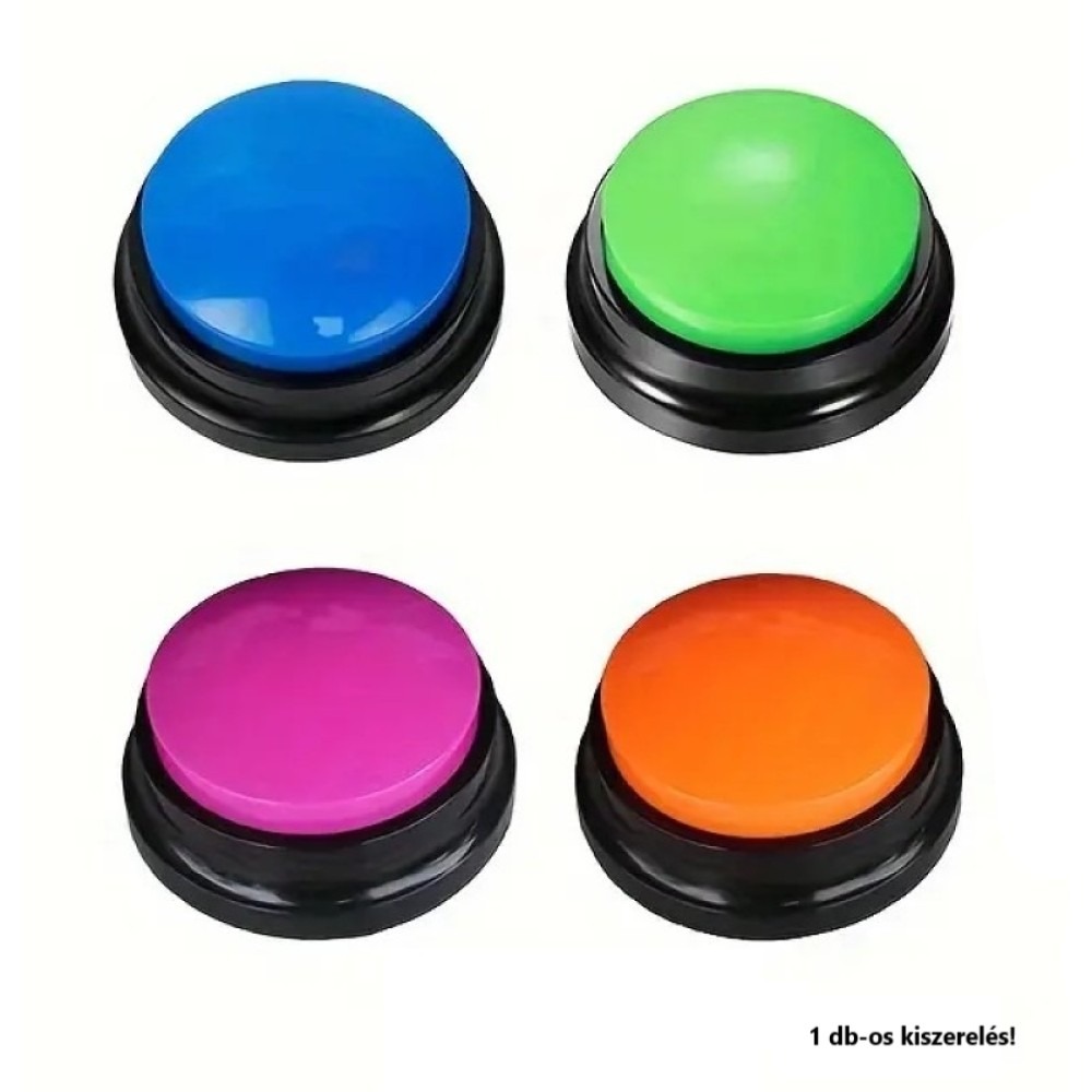 A kutyabeszélő gomb egy kreatív és interaktív eszköz, amely lehetővé teszi, hogy kutyád „megszólaljon”! Egyszerűen rögzíthetsz rá egy szót vagy rövid kifejezést (pl. „kaja”, „ séta”, „játék”), és amikor a kutyus megnyomja a gombot, lejátszásra kerül a felvétel. Remek lehetőség az állat-gazdi kapcsolat elmélyítésére, tanulásra, játékra és kommunikációra!