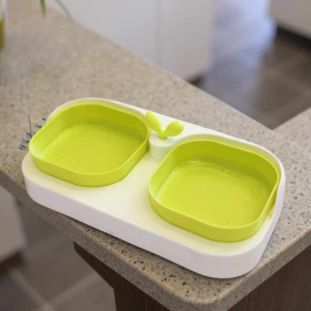 Dupla tálkialakítás – ideális víznek és szárazeledelnek, vagy két kisállatnak egyszerre.