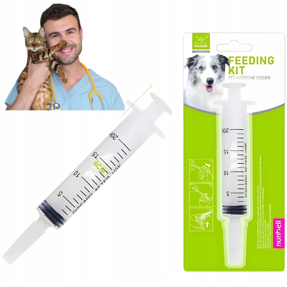 A Nunbell 20 ml-es fecskendő ideális megoldás kutyák, macskák, kölykök vagy más kisállatok számára folyékony táplálék, gyógyszer vagy víz beadásához. Kifejezetten az állatbarát és hatékony etetés megkönnyítésére tervezve.