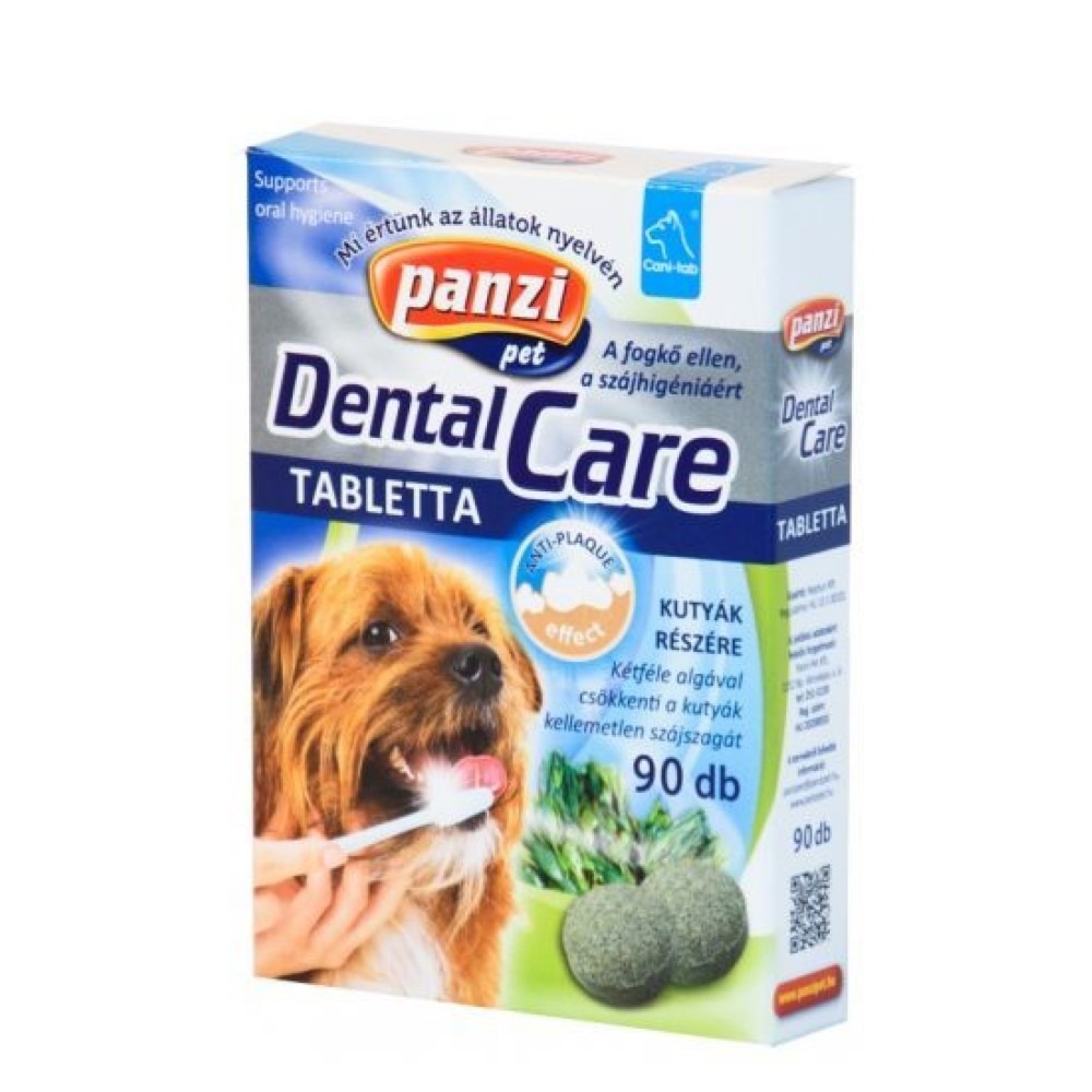 nA Panzi Dental Care Fogkő elleni tabletta egy hatékony szájhigiénés táplálékkiegészítő, amely hozzájárul kutyája fogainak egészségéhez, a fogkő és a kellemetlen szájszag csökkentéséhez. Kétféle algát tartalmaz, melyek segítenek a fogíny ápolásában és a foglepedék csökkentésében.