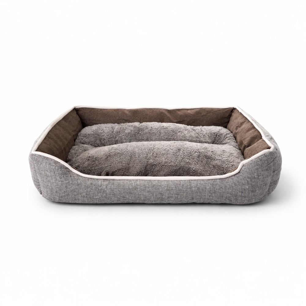 A fekhely belseje puha plüss anyaggal bélelt, amely melegen tartja a kisállatot, míg a külső strapabíró szövet segít megőrizni a fekhely formáját. A kivehető belső párna megkönnyíti a tisztítást és karbantartást.