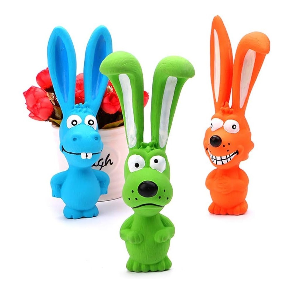 nEz a vidám, hosszúfülű latex játék különleges sikoltozó hanggal szórakoztatja kutyusodat, miközben természetes rágási igényét is kielégíti. A háromféle színes figura – narancssárga róka, kék csacsi, zöld kutya – biztosan kedvencévé válik minden játékos ebnek.