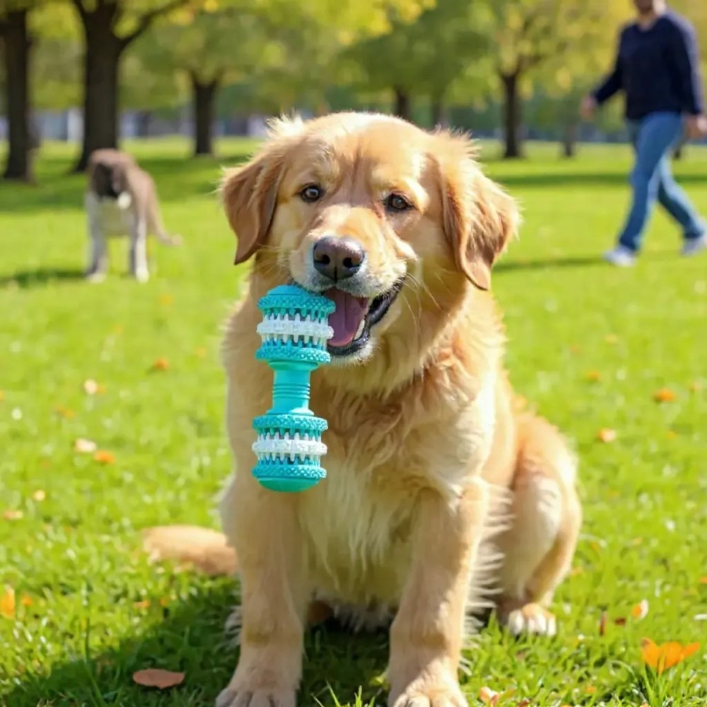 Vaníliás fogtisztító rágójáték kutyáknak – Súlyzó – Türkizkék