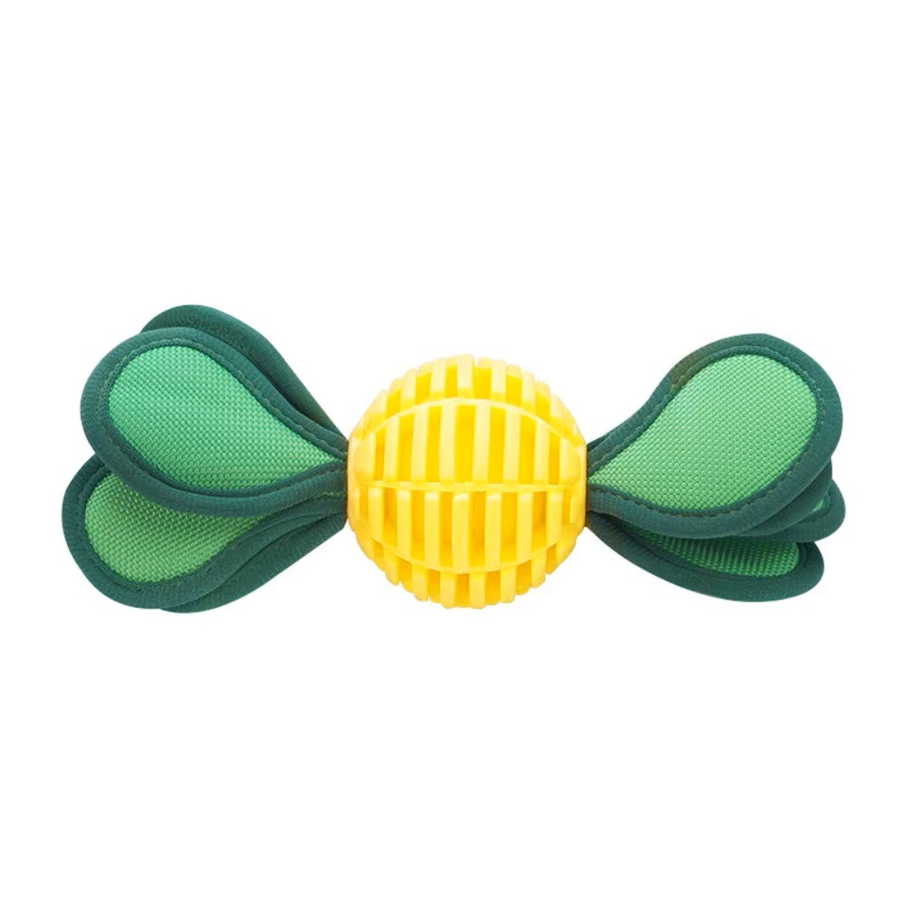 A Zöldlevél fogtisztító rágólabda egy strapabíró, mégis kíméletes kutyajáték, amely játék közben segít a fogak tisztán tartásában és az unalom levezetésében. A levélformájú, textil borítású végek ideálisak húzáshoz és rángatáshoz, míg a középső, bordázott rágólabda rágás közben támogatja a fogápolást.